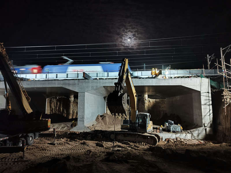 安全防線(xiàn)筑牢,零事故守護(hù)鐵路運(yùn)行。“安全是施工的底線(xiàn)。”項(xiàng)目部與鐵路部門(mén)建立聯(lián)動(dòng)機(jī)制,所有施工作業(yè)限定在“天窗期”內(nèi),現(xiàn)場(chǎng)布設(shè)防護(hù)網(wǎng)、預(yù)警裝置,專(zhuān)職安全員全程盯控。頂進(jìn)過(guò)程中,針對(duì)管線(xiàn)復(fù)雜等突發(fā)情況,提前制定“管線(xiàn)保護(hù)預(yù)案”等措施,確保施工與鐵路行車(chē)“雙安全”。