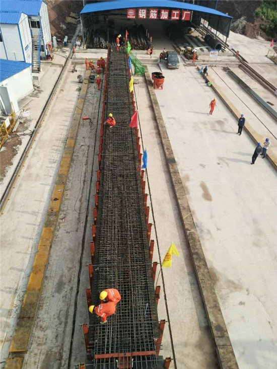 渝黔擴能項目是重慶市“交通三年行動計劃”中的重點項目,工期也由原來的4年縮短到3年,預(yù)計2020年建成通車。為了加快施工進度,中鐵二十一局五公司渝黔項目部全體干部職工放棄所有節(jié)假日,采用五加二、白加黑的工作模式,風(fēng)餐露宿、夜以繼日,精心組織、科學(xué)施工快速推動梁場建設(shè),僅僅用了56天時間就完成了制梁場的鋼筋加工區(qū)、材料堆放區(qū)、梁體預(yù)制區(qū)、成品存梁區(qū)及生活區(qū)等全部功能配套設(shè)施,“首梁”比預(yù)定工期提前了13天。