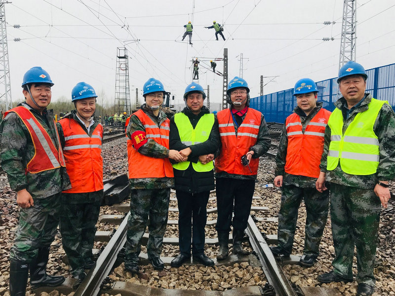 電氣化人為了確保“4.22”安全準(zhǔn)時開通,堅(jiān)持“人員到位、組織到位、措施到位、執(zhí)行到位、監(jiān)督到位”,成立了“4.22”會戰(zhàn)指揮領(lǐng)導(dǎo)小組,對各節(jié)點(diǎn)加強(qiáng)執(zhí)行力和落實(shí)責(zé)任制問題及各項(xiàng)施工準(zhǔn)備工作進(jìn)行了全面安排與部署,明確施工要點(diǎn)和防護(hù)重點(diǎn),做到分工明晰、責(zé)任到人,并制訂了應(yīng)急預(yù)案,提出了明確要求。積極主動與鐵路管理單位緊密聯(lián)系,加強(qiáng)溝通,創(chuàng)造有利施工條件
