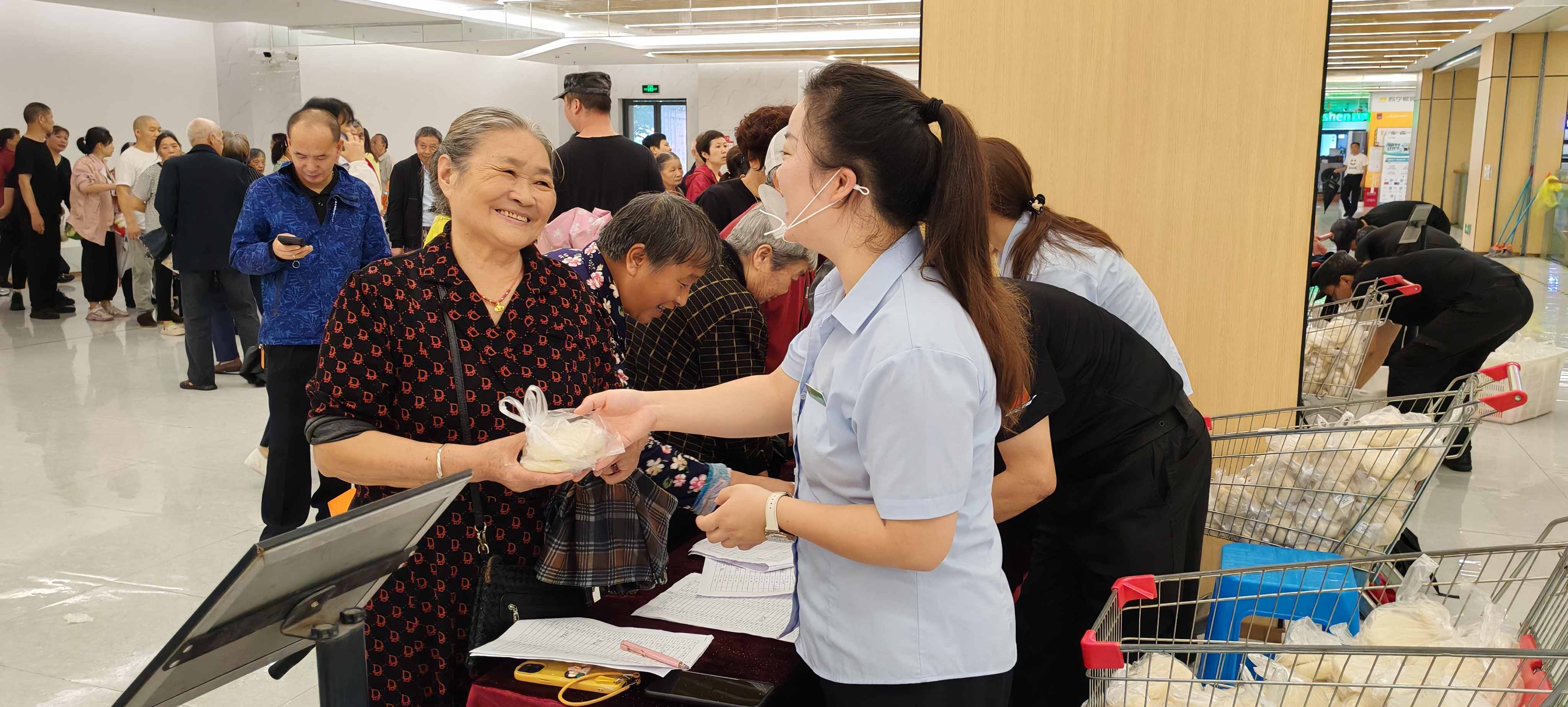 活動當(dāng)天,御龍灣小區(qū)廣場熱鬧非凡。物業(yè)工作人員身著整齊工裝,有條不紊地進(jìn)行糍粑分裝與發(fā)放工作?,F(xiàn)場歡聲笑語不斷,“祝您雙節(jié)快樂!”“記得和家人一起分享” 等溫暖話語縈繞耳畔。業(yè)主們有序排隊(duì),接過包裝精美的糍粑,喜悅之情溢于言表。在五街區(qū)室內(nèi)聯(lián)合一百超市電梯處,舂糍粑活動同步開展。業(yè)主們兩兩協(xié)作,手持木錘將蒸好的糯米舂成軟糯糍粑。大家紛紛用手機(jī)記錄下這溫馨瞬間,現(xiàn)場鄰里間親切交流,分享節(jié)日計(jì)劃,氛圍格外融洽。?