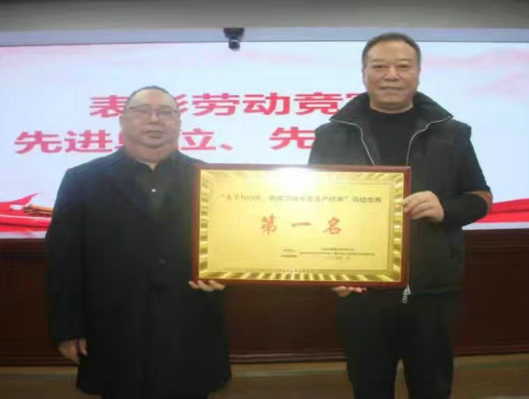 總承包部每季評比表彰勞動競賽先進(jìn)單位和個人,指揮長李兵(左)給獲勞動競賽第一名的18標(biāo)項(xiàng)目部頒發(fā)獎牌