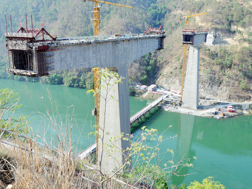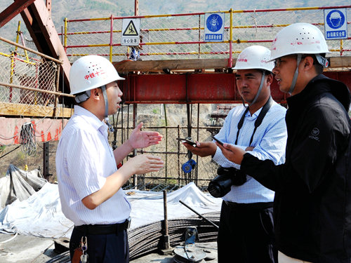 中國鐵路工程建設(shè)網(wǎng)訊(通訊員 鄭建軍)5月15日,備受各級(jí)領(lǐng)導(dǎo)關(guān)注、榮獲中國鐵路總公司昆明局集團(tuán)2018年轄區(qū)內(nèi)鐵路建設(shè)項(xiàng)目“標(biāo)準(zhǔn)化管理三星級(jí)樣板工地”的大臨鐵路瀾滄江雙線大橋,再次迎來中新社和昆明鐵道報(bào)的聯(lián)合采訪。擔(dān)負(fù)施工的中鐵十二局集團(tuán)大臨鐵路三工區(qū)項(xiàng)目經(jīng)理趙凡介紹說:瀾滄江雙線大橋位于小灣電站下游的深山峽谷之中。1號(hào)墩位于陡峭的瀾滄江左岸,2號(hào)墩位于水深達(dá)40米的瀾滄江中,最高墩76米,兩墩間為188米的連續(xù)剛構(gòu),是大臨鐵路全線跨度最大、橋墩最高的唯一一座跨越瀾滄江、連接大理和臨滄兩地的鐵路交通樞紐,是全線重點(diǎn)控制工程。滇西指揮部既然選擇了我們,我們就一定會(huì)有所擔(dān)當(dāng),保證按期完成大橋建設(shè)。