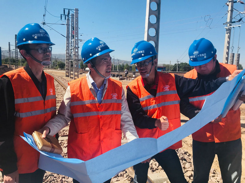 中鐵二十局電氣化公司黨委巡察組與路局驗收組人員現(xiàn)場交流