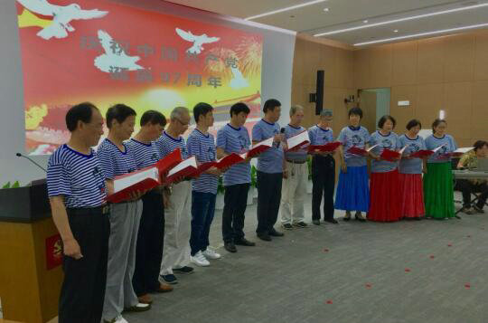 圖四、上海地鐵302標(biāo)項目部員工積極融入到當(dāng)?shù)厣鐓^(qū)慶祝建黨97周年活動中來,詩朗誦《贊歌獻(xiàn)給黨》