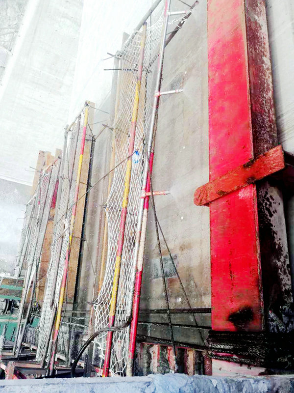 大臨鐵路瀾滄江雙線大橋全長431.6米,孔跨布置為102+188+102米連續(xù)剛構(gòu),規(guī)劃IV級(jí)航道。下部結(jié)構(gòu)均采用鉆孔樁基礎(chǔ),橋臺(tái)采用T型帶洞橋臺(tái),最大墩高76米;上部結(jié)構(gòu)采用102+188+102米連續(xù)剛構(gòu),梁體為單箱單室直腹板變截面箱梁,梁體全長393.9米。瀾滄江雙線大橋是連通大理至臨滄兩地的唯一鐵路交通紐帶,擁有大臨鐵路“最大跨、最高墩”,且唯一跨越瀾滄江。施工交通不便,連續(xù)梁線型控制難,高墩施工安全風(fēng)險(xiǎn)大,質(zhì)量標(biāo)準(zhǔn)要求高,是全線重點(diǎn)工程。因?yàn)橹骺?88米,跨度排名世界第三,被譽(yù)為“世界高地應(yīng)力第一跨”;同時(shí),墩高76米,也是大臨鐵路全線最高的橋梁。施工中,他們分析連續(xù)剛構(gòu)箱梁在高墩上采用懸臂節(jié)段澆筑施工,脫模后受工作面條件的限制,梁體的外表面混凝土難于合理養(yǎng)護(hù),加之受峽谷風(fēng)的影響,成橋后梁體表面可能會(huì)出現(xiàn)裂縫,嚴(yán)重影響結(jié)構(gòu)的安全性和耐久性,其主要原因在于缺少高性能混凝土早期的養(yǎng)護(hù)。他們責(zé)成項(xiàng)目部副總工程師李貴陽帶人成立技術(shù)攻關(guān)小組,深入現(xiàn)場(chǎng),制訂方案,反復(fù)進(jìn)行比選優(yōu)化,終于完成了連續(xù)剛構(gòu)混凝土自動(dòng)養(yǎng)護(hù)系統(tǒng)的研制。實(shí)踐證明:水泵啟動(dòng)后水從噴頭走噴出,噴到腹板頂部,順著腹板流向底板,整個(gè)腹板內(nèi)外都能做到保濕養(yǎng)護(hù),前期掛籃灑水帶模養(yǎng)護(hù)5天,掛籃前移后每節(jié)段施工10天,確保了混凝土養(yǎng)護(hù)齡期不少于14天。