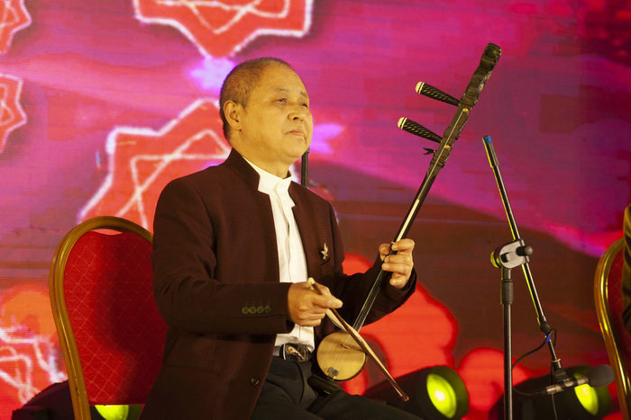 為了活躍氣氛,文娛演出節(jié)目穿插進行。副會長、原鐵道兵第十師48團副參謀長、原中鐵二十一局三公司副處長楊德榮宣讀由1982年入伍的甘肅平?jīng)黾畱?zhàn)友、現(xiàn)中鐵二十一局三公司干部胡志超等戰(zhàn)友發(fā)來的賀電賀信;華銘悅大酒店員工表演舞蹈《美美噠》,為聯(lián)誼會助興。原鐵道兵第十師48團四川樂山市犍為籍戰(zhàn)友、現(xiàn)中國鐵道建筑報記者尹登明、原鐵道兵第十師48團宣傳隊老戰(zhàn)友王哲平演唱《駿馬奔馳保邊疆》;西安女學兵任萱、徐慧表演陜西快板《四大嫂贊鐵兵》;原鐵道兵第十師48團宣傳隊劉大勇、沈方茂、任祖華表演民樂合奏《紅歌聯(lián)奏》;原鐵道兵第十師48團宣傳股干事任祖榮朗誦毛主席詩詞《沁園春·雪》;西安學兵任萱、張群芳、葉維娜、徐慧、王淑玲、李爽等表演舞蹈《洗衣歌》;公安籍戰(zhàn)友、執(zhí)行會長賀正海作總結(jié)講話。華銘悅大酒店朱遠松表演獨唱《再見了大別山》;王淑玲、李爽二重唱《孤獨的牧羊人》;最后是大合唱《我和我的祖國》,由任萱、張群芳、葉維娜、徐慧、王淑玲、李爽領唱,全體演員謝幕。
