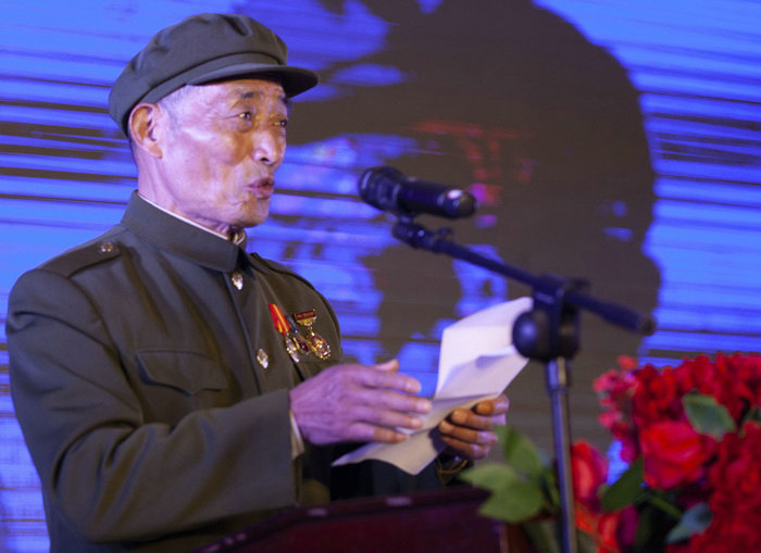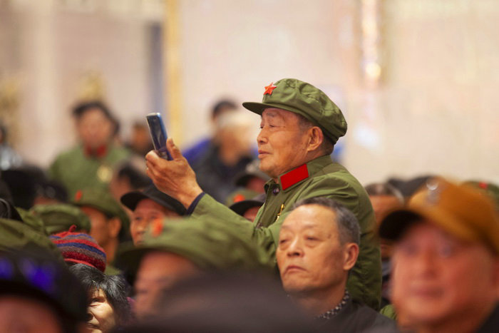 9日上午8時,華銘悅大酒店披上了節(jié)日般的盛裝,容納近千人的會議室布置一新。身著65式軍裝的老戰(zhàn)友們,雖然多數(shù)已年逾七十,年齡最小的也有六十七、八歲,但大家精氣神十足。一身綠軍裝,閃閃的帽徽,鮮紅的領章,颯爽英姿不減當年。老戰(zhàn)友再相見,互訴衷腸,激情澎湃,握手、致意、擁抱的熱烈場面令人動容。再次穿上綠軍裝,他們的思緒又仿佛回到了軍營,回到了激情燃燒的崢嶸歲月。