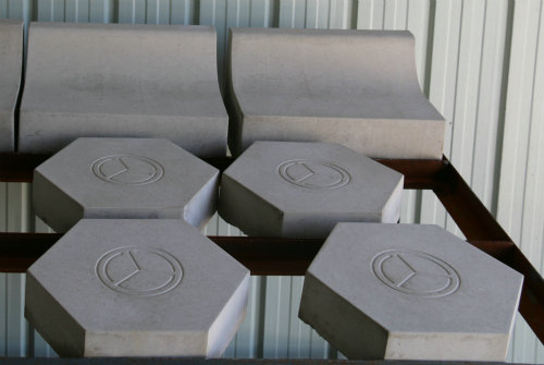 圖一、小型預制構(gòu)件成品 在路面1標,像湯建偉一樣將預制件誤認成大理石的情況時常發(fā)生。進場初期,面對小型構(gòu)件預制工程量大,施工生產(chǎn)任務重,工期緊帶來的難題,該項目部組織技術人員自主設計、研發(fā)出一條集機械化生產(chǎn)和智能噴淋養(yǎng)生于一體的“集約型”生產(chǎn)線,實現(xiàn)了“雙向布料、快速入模、自動振搗、智能養(yǎng)生、分工清模”一條線。不但保證了預制件的品質(zhì),節(jié)約了建設成本,提高了生產(chǎn)效率,而且生產(chǎn)出的構(gòu)件成品外觀和普通的大理石相差無幾。