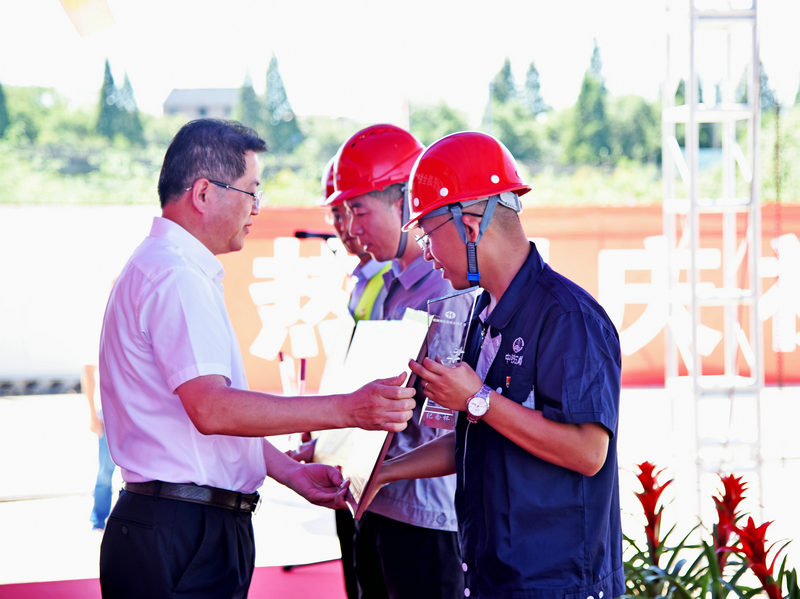 當(dāng)日,出席參加軌通活動(dòng)的人員有:浙江省交通集團(tuán)軌道交通管理部副總經(jīng)理陳明,浙江杭海城際鐵路有限公司黨委書記、董事長董衛(wèi)國和總經(jīng)理言建標(biāo)、中鐵三局集團(tuán)華東區(qū)域常務(wù)副指揮長張弘鵬、中鐵三局集團(tuán)線橋工程有限公司副總經(jīng)理歐陽飛飛等相關(guān)單位的負(fù)責(zé)人。活動(dòng)中,言建標(biāo)代表業(yè)主單位致辭,表揚(yáng)了杭海城際鐵路全體參建將士的辛勤付出與努力,對中鐵三局線橋公司始終保持昂揚(yáng)向上并按期完成施工任務(wù)的積極態(tài)度給與充分肯定,望在今后施工中勇創(chuàng)新的佳績。張弘鵬代表中鐵三局施工單位做了講話,杭海城際鐵路如期實(shí)現(xiàn)全線軌通離不開杭海公司的正確領(lǐng)導(dǎo)和出色的管理,更離不開各單位對中鐵三局線橋公司的大力支持,我們將繼續(xù)發(fā)揚(yáng)“勇于跨越 追求卓越”的中鐵精神,樹三局形象品牌。隨后,杭海城鐵公司董事長董衛(wèi)國為施工單位頒發(fā)了全線軌通獎(jiǎng)牌及獎(jiǎng)杯。