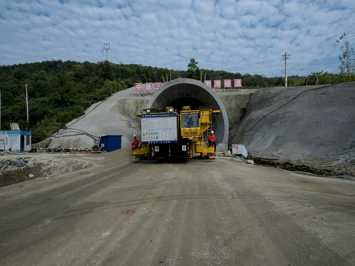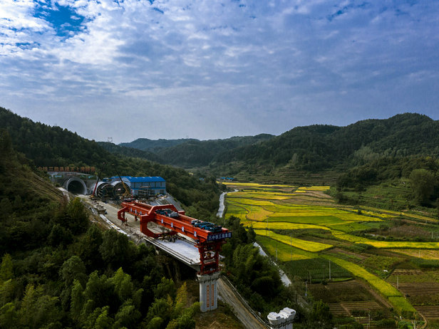 黃黃鐵路黃岡方向王上塆大長隧道出口鋪爾塆雙線特大橋首孔架設成功