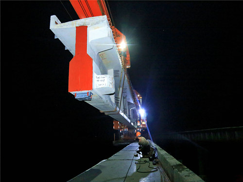 自10月19日開始架設(shè)該特大橋以來,全體參建人員在克服重慶地區(qū)秋分時節(jié)多雨大霧、施工地段窄小濕滑、移梁施工工藝繁瑣、安全生產(chǎn)風(fēng)險大等系列困難的前提下,嚴格執(zhí)行成都局集團臨近既有線施工相關(guān)規(guī)定,大力優(yōu)化運梁架梁方案,合理優(yōu)化施工組織結(jié)構(gòu),并結(jié)合天氣情況,第一時間倒排鋪架工期,及時做好現(xiàn)場機械設(shè)備與人員的調(diào)配等,最終在保工程質(zhì)量、施工安全、環(huán)境保護的前提下,確保了既定節(jié)點目標順利實現(xiàn)。
