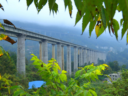 據(jù)中鐵一局鋪架項目部負責人介紹,狗耳泉特大橋位于重慶市彭水自治縣四方村境內(nèi),該橋全長1156.47米,共有36個橋墩,需架設(shè)T梁35孔,在建橋梁距既有線5—20米不等,最高墩臺為68米,是該條鐵路的重難點工程,同時也為建設(shè)中的渝懷鐵路涪秀二線管內(nèi)最后一座特大橋。