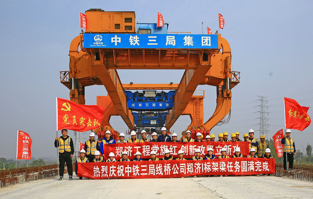 本報濮陽訊(通訊員 劉延東 王富慶 王博)10月31日上午,隨著最后一榀900噸箱梁緩緩落至清豐特大橋1070 #墩至1069#墩上,標志著中鐵三局線橋公司圓滿完成了鄭濟高鐵濮陽段Ⅰ標全部架梁任務,實現(xiàn)了由箱梁架設向軌道鋪設的工序轉(zhuǎn)換,吹響了鄭濮段鋪軌的號角。