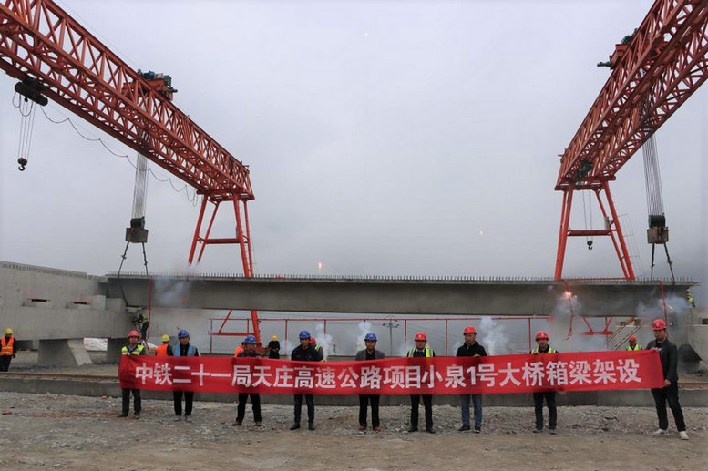 3月18日上午,中鐵二十一局四公司天莊高速公路項(xiàng)目小泉1號大橋首榀30米裝配式預(yù)應(yīng)力混凝土箱梁架設(shè)順利完成,標(biāo)志著箱梁架設(shè)工程正式拉開序幕,為天莊高速項(xiàng)目如期建成奠定了堅(jiān)實(shí)基礎(chǔ)。