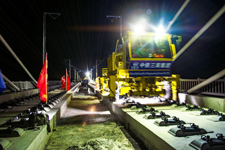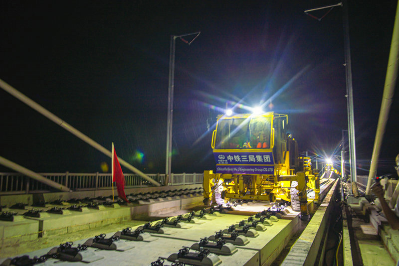 位于黃岡市黃州區(qū)與浠水縣交境處的巴河特大橋是目前國內(nèi)高速鐵路首座三塔部分斜拉橋工程,全長約2961米,是黃黃高鐵鐵路全線重點控制性工程之一。中鐵三局線橋公司黃黃項目部按照武九公司黃岡指揮部對黃黃高鐵開通運營的戰(zhàn)略部署,克服種種不利因素,多措并舉,以黃黃高鐵浠水南站為鋪軌中心,采用兩臺WZ-500型長鋼軌鋪設(shè)機組,最終實現(xiàn)大里程黃梅方向 6月19日首鋪。鋪軌期間參建將士風雨兼程,戰(zhàn)雨天、斗酷暑、晝夜奮戰(zhàn)、攻克多種技術(shù)難關(guān),不斷刷新鋪軌進程,于7月27日黃梅東站右線接軌、8月9日黃梅東站左線接軌。至此黃黃高鐵項目浠水南站至黃梅之間全線鋪軌告捷,完成黃黃高鐵與安九高鐵黃梅東站順利接軌成功。