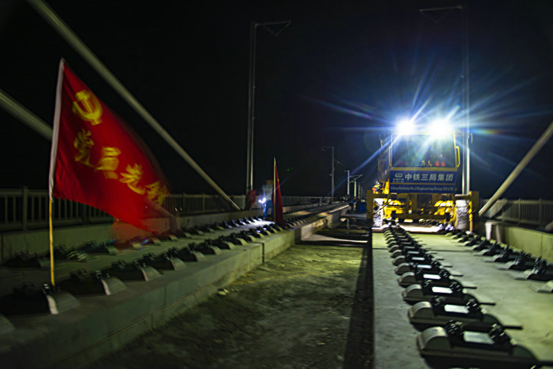 黃黃高鐵鋪軌夜戰(zhàn)巴河特大橋