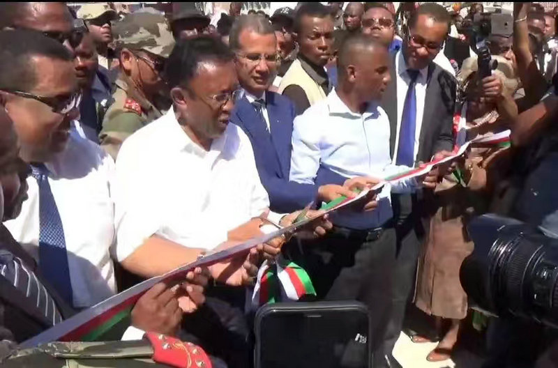 馬達加斯加總統(tǒng)埃里·拉喬納里曼皮亞尼納在9號國道竣工典禮上剪彩 郭亞軍攝影