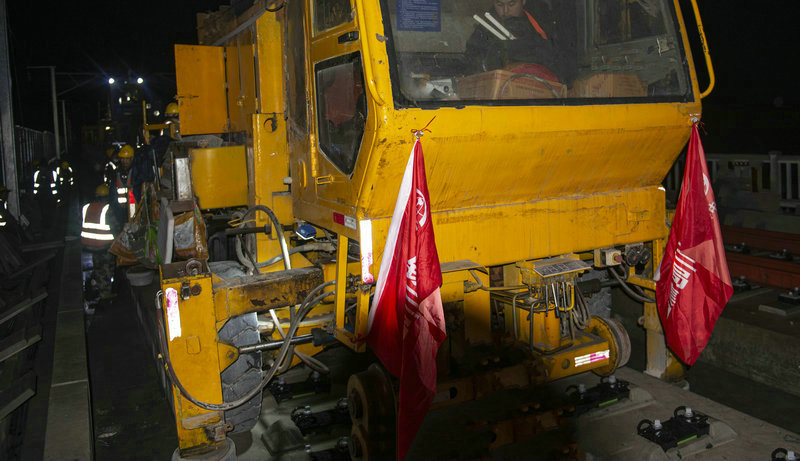 湖北襄陽(yáng)訊16日21時(shí)48分,在鄭萬(wàn)高鐵巴東北站襄陽(yáng)端無(wú)砟道岔區(qū),推送車(chē)將進(jìn)站最后一段鋼軌緩緩?fù)扑?,鋼軌前端由鋪軌牽引?chē)牽引,與此前鋪設(shè)的道岔鋼軌軌道進(jìn)行接軌成功,至此現(xiàn)場(chǎng)鞭炮齊鳴、禮花升空、歡呼聲響徹一片。標(biāo)志著由中鐵三局線橋公司承擔(dān)鋪軌任務(wù)的鄭萬(wàn)高鐵右線鋪軌進(jìn)入恩施土家族苗族自治州巴東北站,繼續(xù)向著標(biāo)段鋪軌終點(diǎn)站推進(jìn),意味著鄭萬(wàn)高鐵距離湖北段鋪軌任務(wù)完成指日可待。