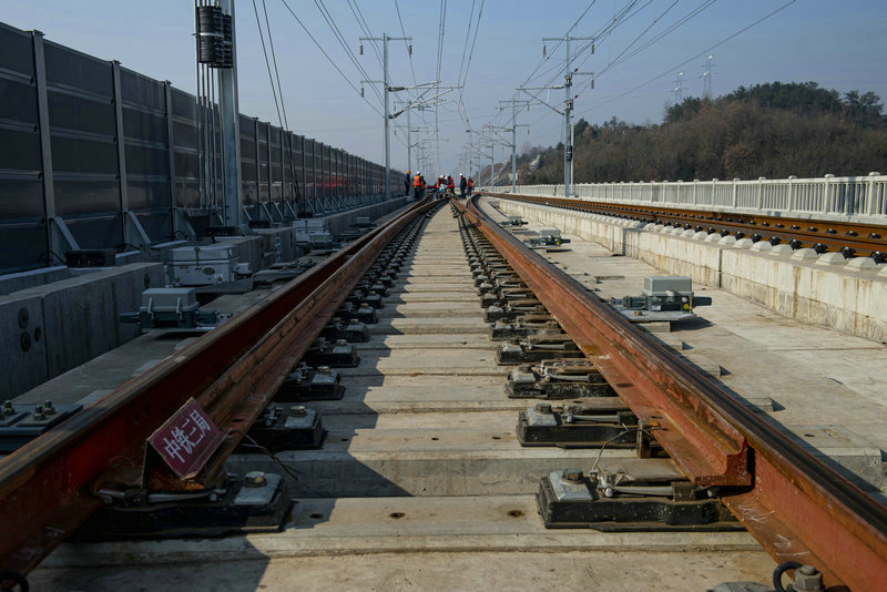 鄭萬(wàn)高鐵南漳站無(wú)砟軌道道岔精準(zhǔn)調(diào)試進(jìn)行中鄭萬(wàn)高鐵為西南地區(qū)至華中、華北地區(qū)的快速客運(yùn)通道,兼顧沿線城際及旅游客流運(yùn)輸。中鐵三局線橋公司承擔(dān)鄭萬(wàn)高鐵湖北段ZWZQ-2標(biāo)414千米鋪軌以及線路放散鎖定與無(wú)縫鋼軌焊接等施工任務(wù)。隨著12月21日鋪軌在省界香樹灣隧道與萬(wàn)州方向接軌成功,意味著全線鋪軌工程施工告捷,線路軌道靜態(tài)驗(yàn)收、聯(lián)調(diào)聯(lián)試方案已經(jīng)進(jìn)入行使標(biāo)準(zhǔn)快車道。