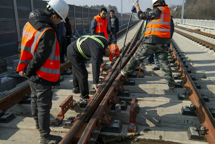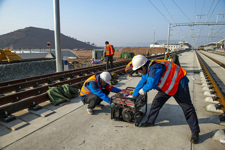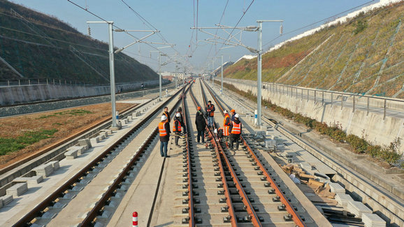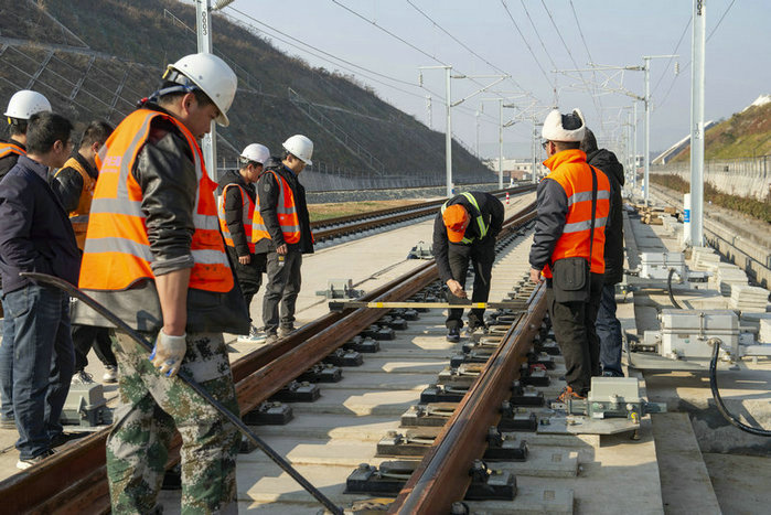 湖北襄陽(yáng)訊 12月29日,由中鐵三局線橋公司承建鄭萬(wàn)高鐵湖北南段鐵路以南漳站為起點(diǎn),沿線各站鐵路線路道岔軌道精準(zhǔn)精調(diào)工作全面啟動(dòng)。