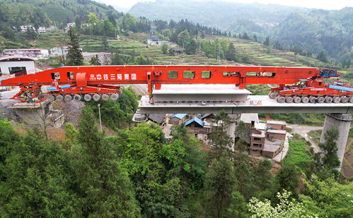 2022年4月17日14時28分,隨著運架一體機將一榀790T箱梁的準確落在洗馬灘雙線特大橋0#-1#橋墩上,標志著洗馬灘雙線特大橋已貫通,貴南高鐵3標一工區(qū)管段內58榀箱梁架設完畢,貴南高鐵3標僅剩2榀箱梁待架設,約一周后將全線貫通,正式進入最后沖刺開通準備階段。