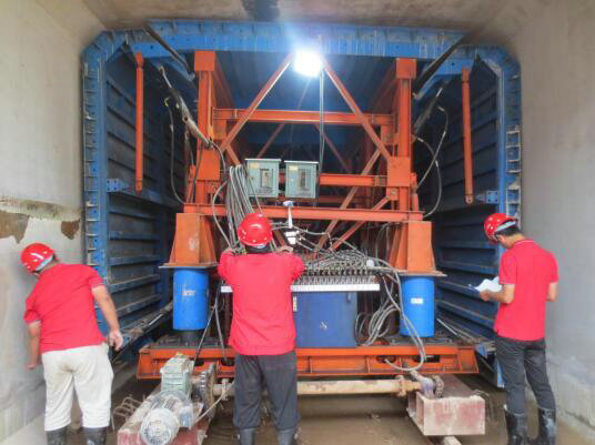 施工現(xiàn)場,管廊施工“機(jī)器人”——模板臺車在緩緩地前行,在工地大屏幕上顯示混凝土“肌膚”的濕度、溫度、厚度等幾乎是零誤差,管廊內(nèi)壁混凝土拆模后呈現(xiàn)“三面光”。“按照傳統(tǒng)工藝,管廊主體混凝土施工采用立模板、綁扎鋼筋、澆筑混凝土等繁瑣工藝,不僅浪費人力物力,而且容易造成誤差。”三公司津冀工程項目管理部經(jīng)理王海偉介紹,項目部與廠家合作研發(fā)管廊襯砌臺車,讓施工“多快好省”,克服了組合鋼模板拼縫多、加固復(fù)雜繁瑣拆卸困難的缺點,混凝土外觀大大提升,作業(yè)人員減少8人,施工速度提高三分之一,整體平整度誤差低于3毫米,管廊襯砌臺車被三公司評為創(chuàng)新工裝。