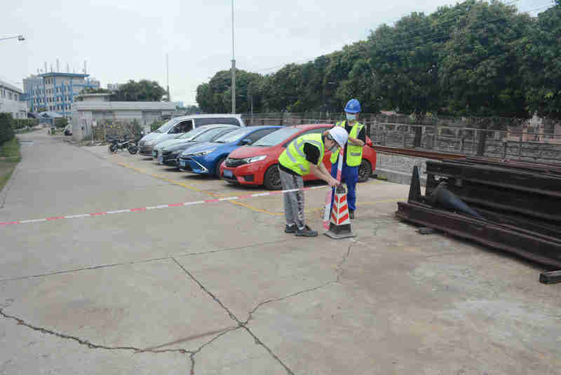 8時50分,作業(yè)隊到達西塱車輛段。雖然是早上,室外溫度已是35攝氏度,太陽早已映紅了車輛段,不遠處的鋼軌在太陽的暴曬下變的“彎彎曲曲”,仿佛像一條游龍,熱浪充滿了每一個角落,讓人無處躲藏。
