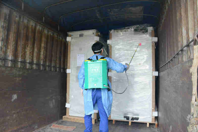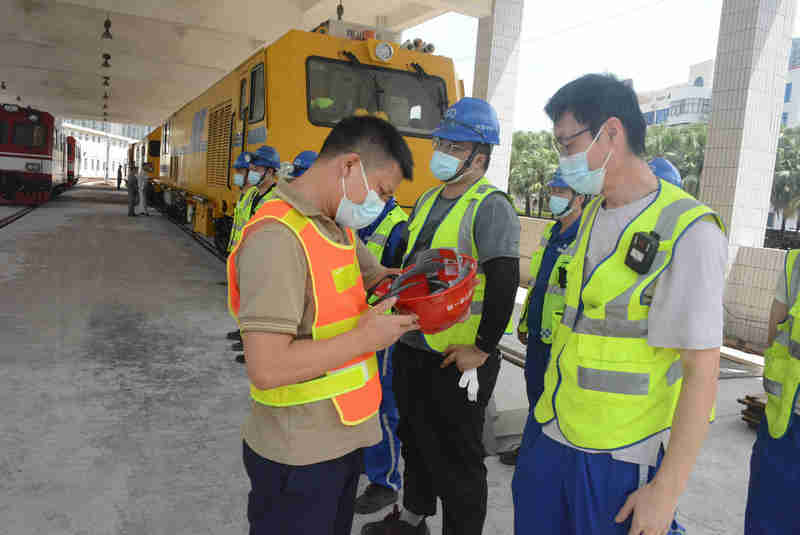 10時20分,在經(jīng)過防疫系列檢查、安全檢查、工器具清點、運營簽發(fā)施工令后,作業(yè)人員迅速列隊成組,項目安質(zhì)部配合作業(yè)人員這邊拿起防護墩、拉起警戒線出清無關(guān)人員,那邊指揮貨車調(diào)整升降尾板至和軌道車車倉平齊。貨車司機打開貨車后門,現(xiàn)場防疫員根據(jù)業(yè)主防疫要求對柜體進行消毒。大家各司其職,緊而有序,項目安質(zhì)部、監(jiān)理、業(yè)主單位全程督戰(zhàn),還按照管理要求安排專人對施工全程進行了錄像。