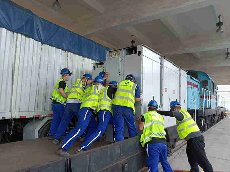 新設(shè)備柜從火車轉(zhuǎn)運至軌道車上