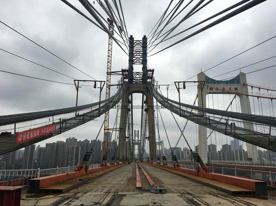 9月20日,鵝公巖軌道專用橋主纜架設(shè)工作全部完成,架設(shè)過(guò)程歷時(shí)40天,共架設(shè)主纜184股,平均明天完成架設(shè)4.6股,比預(yù)期工期計(jì)劃提前10天完成。