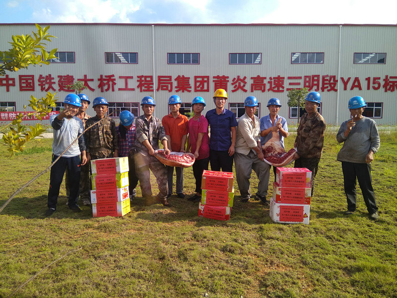 莆炎YA15標(biāo)開展“迎中秋、慶國慶”送溫暖活動。項目部領(lǐng)導(dǎo)帶領(lǐng)辦公室、安質(zhì)部人員分別對項目部所屬各施工隊生產(chǎn)一線人員進(jìn)行走訪慰問,為一線工人每人送去一盒月餅,為食堂送去豬肉、米面等節(jié)日用品,讓他們歡度一個安全喜慶、愉快和諧的國慶、中秋佳節(jié)。項目此次送溫暖活動共走訪8個施工隊,給工人們送去了香甜的中秋月餅200余盒,豬肉500余斤,并為他們送上一份關(guān)心和溫馨祝福。