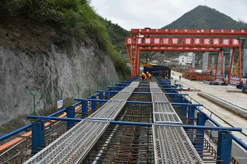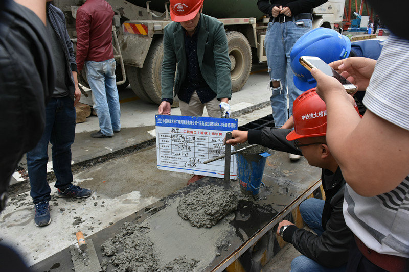 澆筑前一夜,現(xiàn)場(chǎng)技術(shù)員和班組人員仍加班加點(diǎn),挑燈夜戰(zhàn),認(rèn)真執(zhí)行首件制。模板試拼、鋼筋綁扎及波紋管定位、模板拼裝等工藝嚴(yán)格按照項(xiàng)目公司、總監(jiān)辦、駐地辦要求進(jìn)行檢驗(yàn)、驗(yàn)收,確保各項(xiàng)參數(shù)滿足技術(shù)要求和設(shè)計(jì)規(guī)范,這也為第一片T梁的成功澆筑奠定了堅(jiān)實(shí)基礎(chǔ)。澆筑前,及時(shí)報(bào)驗(yàn)監(jiān)理,并組織現(xiàn)場(chǎng)技術(shù)交底。澆筑過程中,項(xiàng)目部、工區(qū)全員參加,全程控制,確保首片T梁達(dá)到“內(nèi)實(shí)外美、首件示范”的效果。項(xiàng)目公司、總監(jiān)辦、駐地辦均出席首片T梁預(yù)制現(xiàn)場(chǎng)。