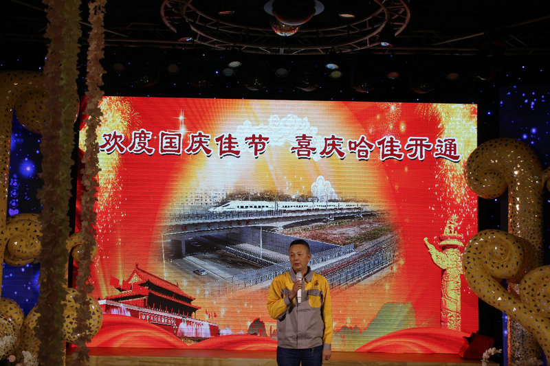 余音繞梁,笙簫賀唱。項(xiàng)目部舉行了“歡度國(guó)慶佳節(jié) 喜慶哈佳開通”聯(lián)歡盛典,在精彩的開場(chǎng)引領(lǐng)下,哈佳項(xiàng)目部領(lǐng)導(dǎo)班子集體合唱《沒(méi)有共產(chǎn)黨就沒(méi)有新中國(guó)》、《打靶歸來(lái)》,唱響贊頌祖國(guó)的嘹亮紅歌,現(xiàn)場(chǎng)氛圍由此引爆,一曲曲可歌可泣的時(shí)代壯歌,一段段詼諧幽默卻又凸顯時(shí)代的舞蹈,帶大家領(lǐng)略了國(guó)家的雄偉壯闊,領(lǐng)大家見(jiàn)證了那激昂的青春歲月;一段段振奮的三句半,一首首慷慨的詩(shī)朗誦,將大家?guī)Щ亓怂哪旯呀ㄔO(shè)的艱辛之路,帶大家再次見(jiàn)證了相互依伴的歲月,展示了那股永不服輸、勇攀高峰的精神境界,引起了大家的共鳴,讓我們看到了這群奮斗在基建第一線的工程人最幸福、最可愛(ài)的一面。這群辛苦的建設(shè)者們,難得有空閑時(shí)間坐下來(lái)一起暢談未來(lái),一起唱響心中的豪邁,今夜注定是最開心的一夜!