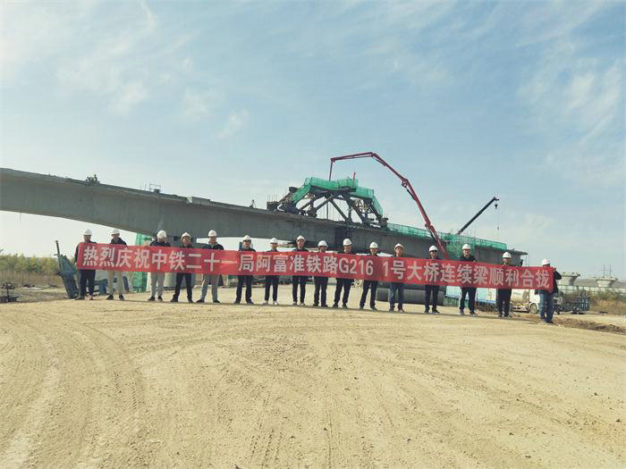 10月11日下午3點30分,中鐵二十一局集團一公司承建阿富準鐵路G216立交1號大橋(32+48+32)米連續(xù)梁最后一跨順利合攏,標志著該大橋主體工程圓滿完成。
