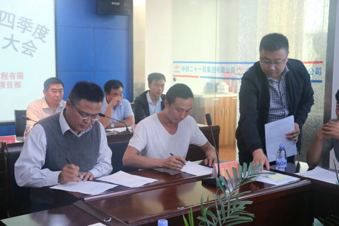 根據(jù)會(huì)議議程,項(xiàng)目經(jīng)理洪富義分別與各勞務(wù)隊(duì)負(fù)責(zé)人簽訂了大干目標(biāo)責(zé)任狀,項(xiàng)目書記陳建良作了動(dòng)員講話。洪富義對(duì)開展勞動(dòng)競(jìng)賽活動(dòng)作了部署安排,要求全體參建人員要以強(qiáng)烈的緊迫感、危機(jī)感和責(zé)任感,攻堅(jiān)克難,齊心協(xié)力,在保證安全質(zhì)量的前提下,全面掀起大干熱潮,為完成產(chǎn)值和各項(xiàng)節(jié)點(diǎn)目標(biāo)共同努力。