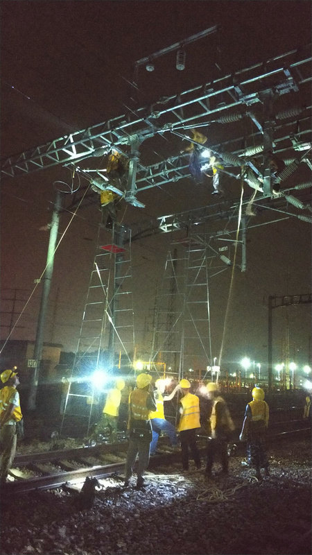 2018年10月16日夜間是梅汕項目部的第一次二級施工,一聲聲此起彼伏的鞭炮聲,拉開了夜晚的施工序幕。施工現(xiàn)場人員較多,大燈照亮了整個施工現(xiàn)場,六局在改造施工軌道,我們在安裝設備,雖然人數(shù)很多,工作卻井然有序,為了營造兩局同時施工的施工環(huán)境,雙方領導在密切的溝通下,開展了現(xiàn)場施工。