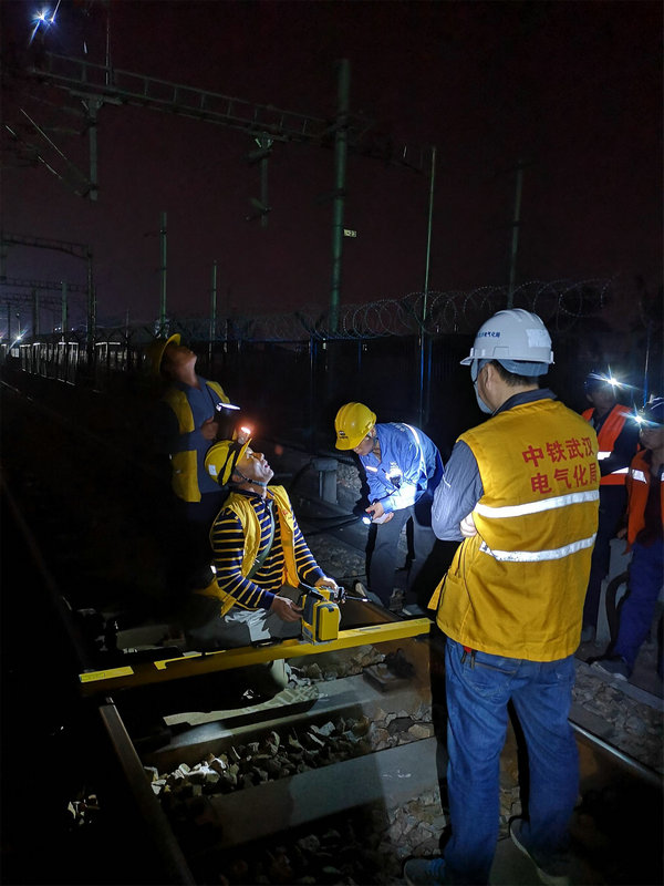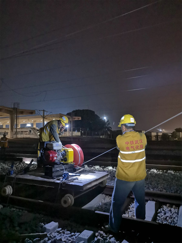 月黑風(fēng)高夜,施工正忙時,2018年10月19日晚,中鐵武漢電氣化局廣州分公司梅汕電氣化項目部在潮汕高鐵站東岔區(qū)進(jìn)行013#至073#下行AF線架設(shè)(施工里程:杭深線K1316+031.7至K1317+325),也是潮汕高鐵站東岔區(qū)改造影響較大的最后一根附加線架設(shè),此AF線架設(shè)的完成預(yù)示著潮汕站改施工將進(jìn)入白熱化階段,隨著下一步既有附加線的拆除施工面將全面展開,為10月30日工程竣工奠定了基礎(chǔ)。