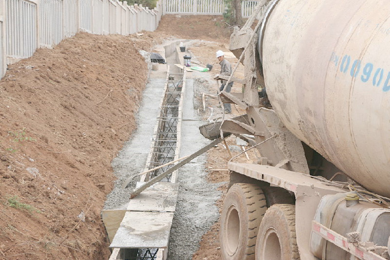 拉市海車站站場(chǎng)病害整治工程正在進(jìn)行排水溝混凝土澆筑施工
