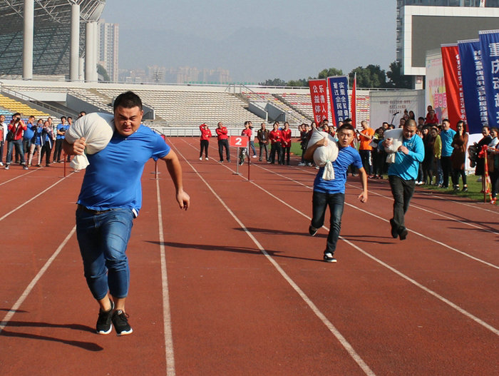 此次農(nóng)民運(yùn)動會在永川體育中心舉行,設(shè)有拔河、跳繩、五人六足跑、100米負(fù)重折返跑、撮沙、車輪滾滾六個比賽項(xiàng)目,共12支隊(duì)伍參賽。