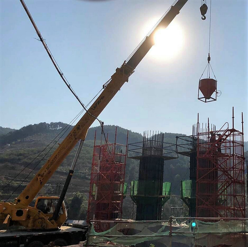 11月3日,中鐵二十三局六公司渝黔高速四項目部碾田磅大橋右線9#墩施工現(xiàn)場,迎來了首根橋梁墩柱的澆筑,伴隨著混凝土的入模,碾田磅大橋梁下部施工的局面正式開啟。