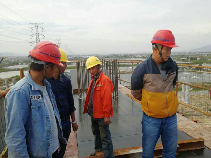 本次高空作業(yè)檢查以人員個人防護(hù)用具與臨邊防護(hù)檢查為主,對爬梯的安裝情況進(jìn)行了排查,確保其穩(wěn)固可靠;對作業(yè)平臺的安全狀況進(jìn)行細(xì)致檢查,提出“必須上緊扣件、必須掛好鐵絲網(wǎng)、必須滿鋪平臺、必須設(shè)置擋腳板”四個高空作業(yè)安全基本要求;對作業(yè)工人安全帽、安全帶等防護(hù)用具的質(zhì)量進(jìn)行抽查,對檢查出有破損、斷絲情況的防護(hù)用品要求其立即停止作業(yè)進(jìn)行更換。項目書記強(qiáng)調(diào),一定要密切關(guān)注當(dāng)?shù)貧夂蜃兓?,遇六級以上大風(fēng)等惡劣環(huán)境應(yīng)立即暫停高空作業(yè),要始終將工人生命安全放在首位。