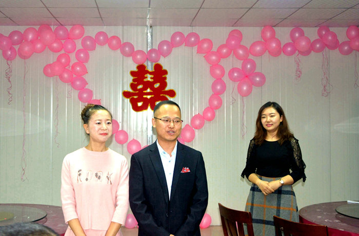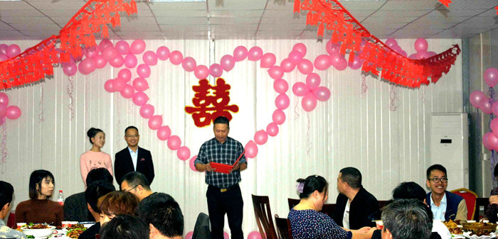 項(xiàng)目經(jīng)理為新人證婚,希望兩位新人永結(jié)同心、白頭偕老、共建幸福美滿的家庭,用聰明才智、青春熱情為項(xiàng)目建設(shè)增光添彩。作為全體職工“娘家”的公司工會派出代表為新人主持婚禮,代表公司工會向兩位新人送上禮品和祝福,希望兩位新人在今后的日子里互敬互愛、相濡以沫、風(fēng)雨同舟,并介紹了他們相識、相知、相戀的愛情故事。