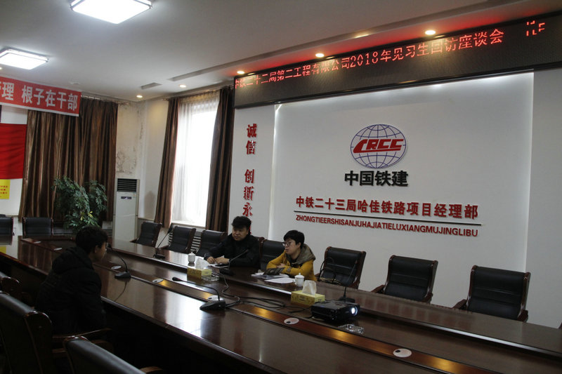 10月31日,中鐵二十三局集團(tuán)第二工程有限公司人力資源部田蕊、劉澍做客哈佳鐵路項(xiàng)目經(jīng)理部,對(duì)2018年新入職見(jiàn)習(xí)生進(jìn)行了回訪座談。