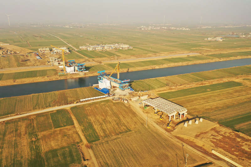 截至目前,樁基完成2426根,承臺(tái)、系梁完成418個(gè),墩柱完成807根,臺(tái)帽(蓋梁)完成373個(gè),梁板預(yù)制完成2142片,懸臂現(xiàn)澆完成106個(gè)節(jié)段,預(yù)制箱涵安裝完成765米,現(xiàn)澆涵洞完成1178米,圓管涵完成1521米,土方填筑完成392萬(wàn)方,重點(diǎn)控制性工程新汴河特大橋、沱河大橋上部結(jié)構(gòu)懸澆梁正在全力沖刺合龍。