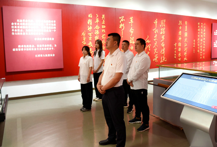 青山埋忠骨,翠柏勉英雄。全體人員在江西革命烈士紀(jì)念堂回顧革命先烈的感人故事,通過瞻仰烈士遺像、參觀館內(nèi)照片墻、雕塑群等方式,共同回顧革命烈士的生平與英勇的革命事跡。沉浸式的參觀,讓大家深刻感受到革命先輩的家國情懷和精神力量,領(lǐng)悟到革命先輩對初心和理想信念的堅(jiān)守。