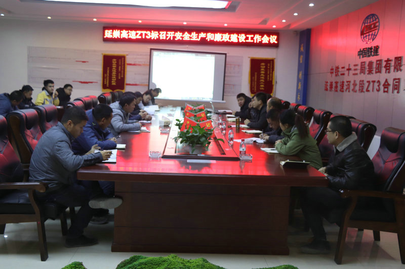 12月4日,中鐵二十三局延崇ZT3標(biāo)緊急落實(shí)籌建處召開的安全生產(chǎn)和廉政建設(shè)會議精神,項(xiàng)目領(lǐng)導(dǎo)就現(xiàn)場安全管理、文明施工生產(chǎn)和廉政建設(shè)工作傳達(dá)了上級單位意見。
