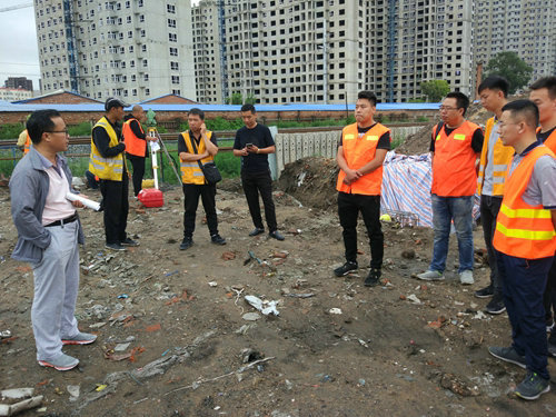 李總親自在施工現(xiàn)場技術(shù)人員講解施工難點(diǎn)