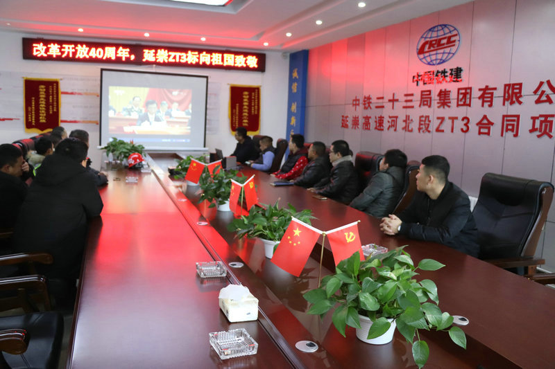 四十年前的今天,以黨的十一屆三中全會(huì)為起點(diǎn),中國(guó)開(kāi)始了偉大的改革開(kāi)放。今天,在人民大會(huì)堂,慶祝改革開(kāi)放四十周年大會(huì)隆重舉行,習(xí)近平總書(shū)記發(fā)表重要講話,回顧改革開(kāi)放四十年的光輝歷程,深刻總結(jié)改革開(kāi)放的寶貴經(jīng)驗(yàn)。12月18日上午十點(diǎn),中鐵二十三局延崇項(xiàng)目部全體職工熱切關(guān)注此次直播,項(xiàng)目部領(lǐng)導(dǎo)班子成員第一時(shí)間帶頭在會(huì)議室通過(guò)多種途徑、多種形式觀看大會(huì)直播盛況。