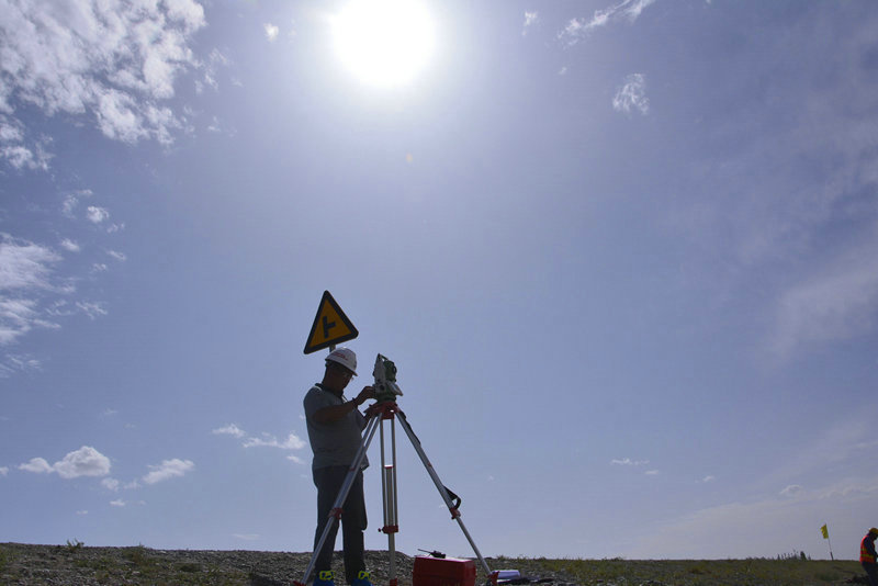 都說(shuō)測(cè)量是工程之眼,測(cè)量人員是工程施工的先鋒官。身為一個(gè)測(cè)量員,每天扛著沉重儀器進(jìn)行作業(yè),早已成為他們鍛煉身體的一項(xiàng)運(yùn)動(dòng)。與內(nèi)地測(cè)量員不同的是,身在新疆和田地區(qū)喀葉墨項(xiàng)目的測(cè)量員不僅要承受儀器的厚實(shí)分量,還得抵擋得住高溫、強(qiáng)紫外線和風(fēng)沙天氣的侵害。然而也正是這樣的天氣才讓他們強(qiáng)大,更在風(fēng)沙中淬煉了一雙火眼金睛。