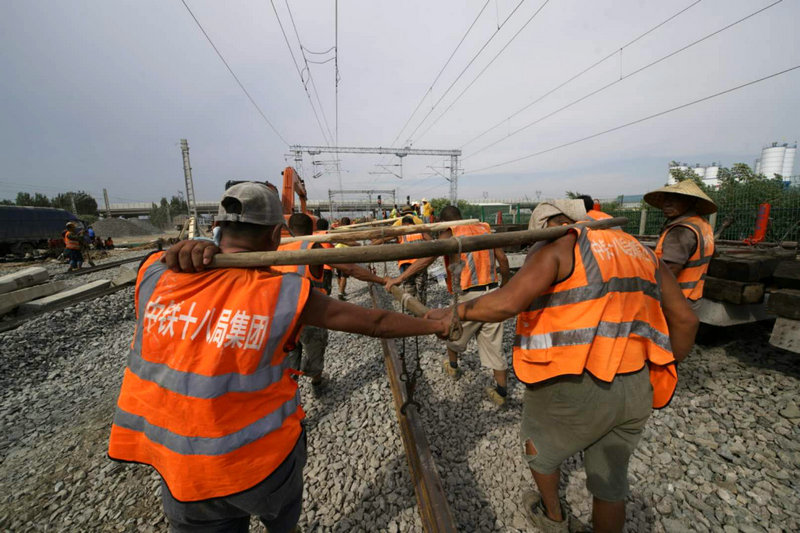 5、中鐵十八局集團(tuán)五公司建筑公司承建的唐曹鐵路施工現(xiàn)場(白雯 伍振 攝)